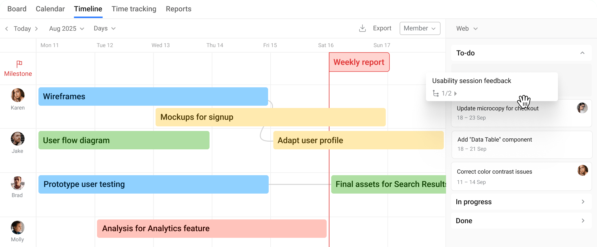 A typical Trello design workflow involves many moving parts. Planyway connects them all visually. A card for "Client Kickoff" can be a one-day event on the calendar. The "Moodboard & Concepts" card can be a week-long task assigned to a specific designer. You can then use dependencies to link it to the "UI Design" phase. By using Planyway's timeline view, checklists as subtasks, and workload balancing, you transform a static list of to-dos into a dynamic, interactive project plan that clearly shows the entire trello design process from start to finish.